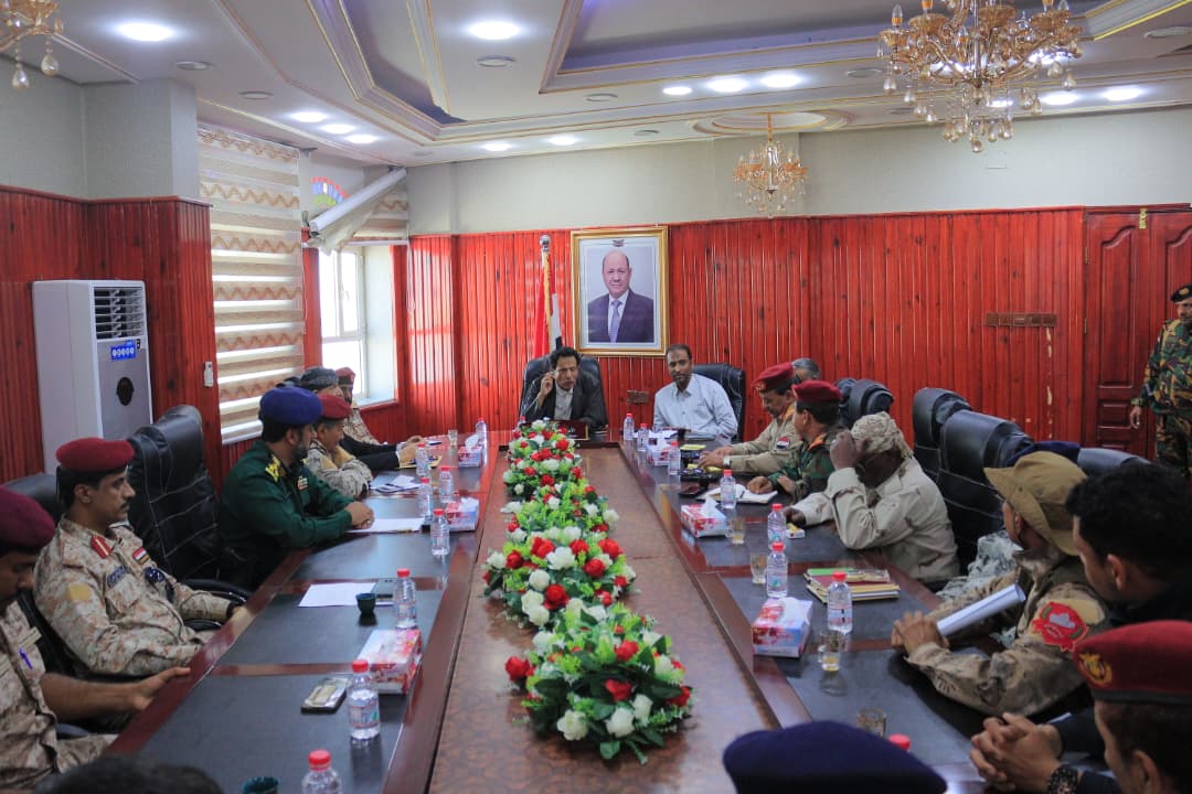 During the meeting, which was attended by the First Deputy Governor, Brigadier General Dr. Mukhtar bin Owaid al-Jaafari, the governor reviewed efforts made during the previous phase, the latest developments at the national and local levels, and the role played by the Security Committee and military and security units in maintaining the security, stability, and public tranquility of the governorate.